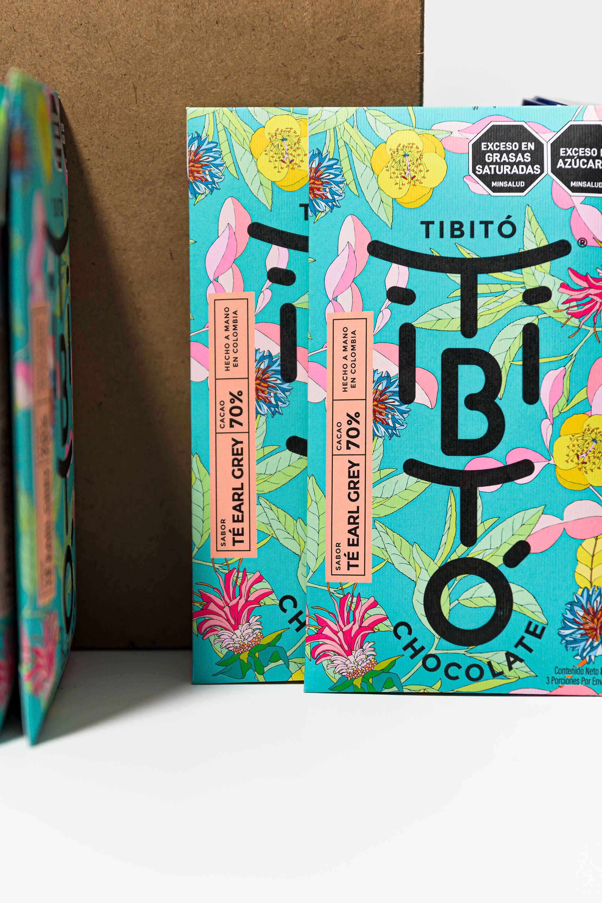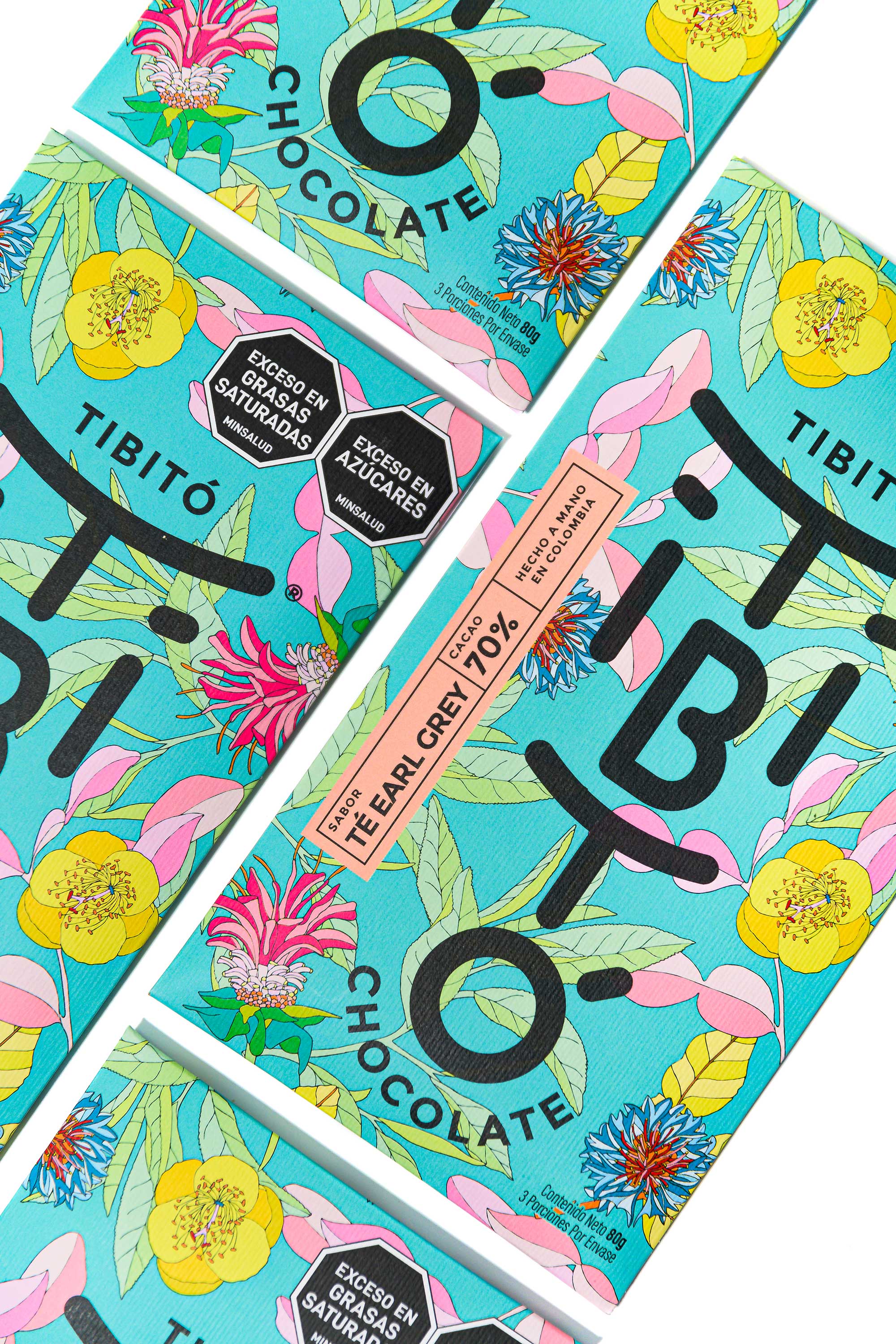 This packaging illustration was created for a Mother’s Day special edition of a Tibitó Chocolates bar infused with Earl Grey. Inspired by the tea’s botanical notes, the design features delicate bergamot leaves, tea leaves, and their blossoms, intertwining to evoke the natural origins of the infusion. Set against a soft aqua background, the pink and yellow tones bring a vibrant yet refined contrast, evoking both the freshness of the ingredients and the richness of the chocolate.