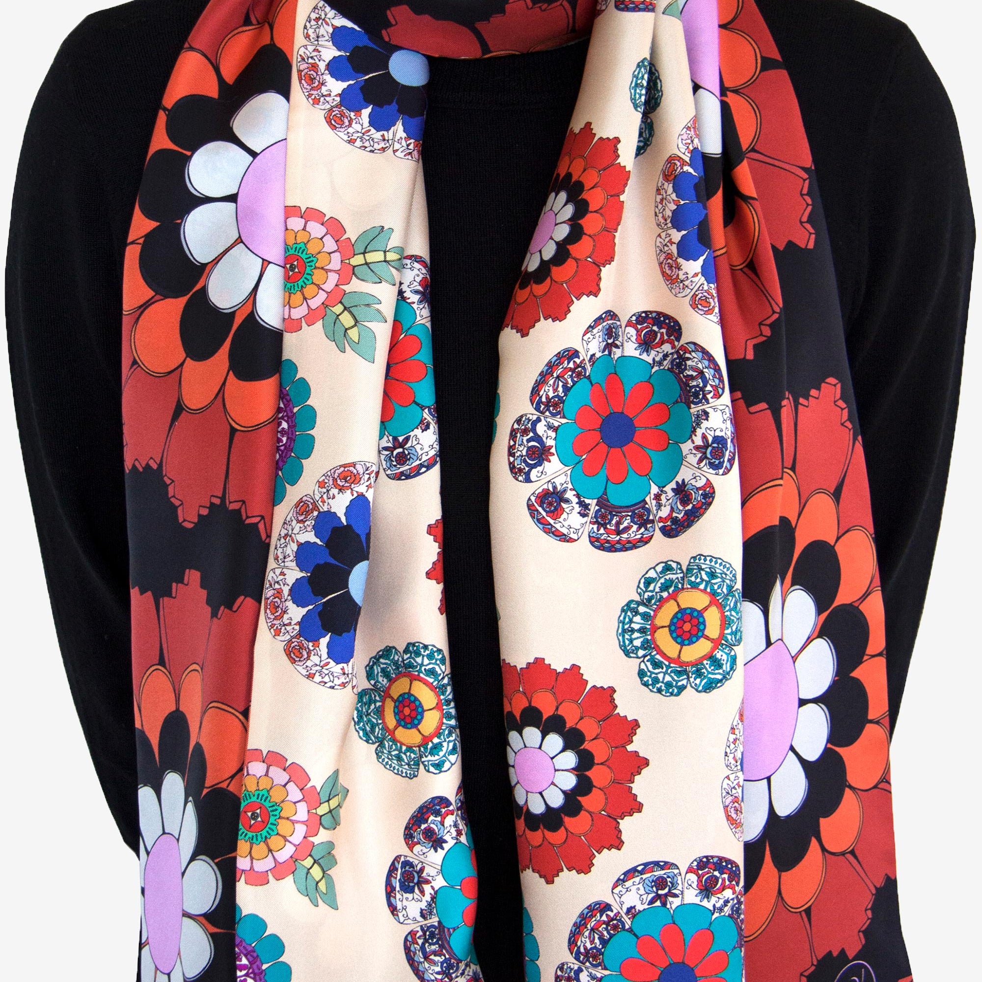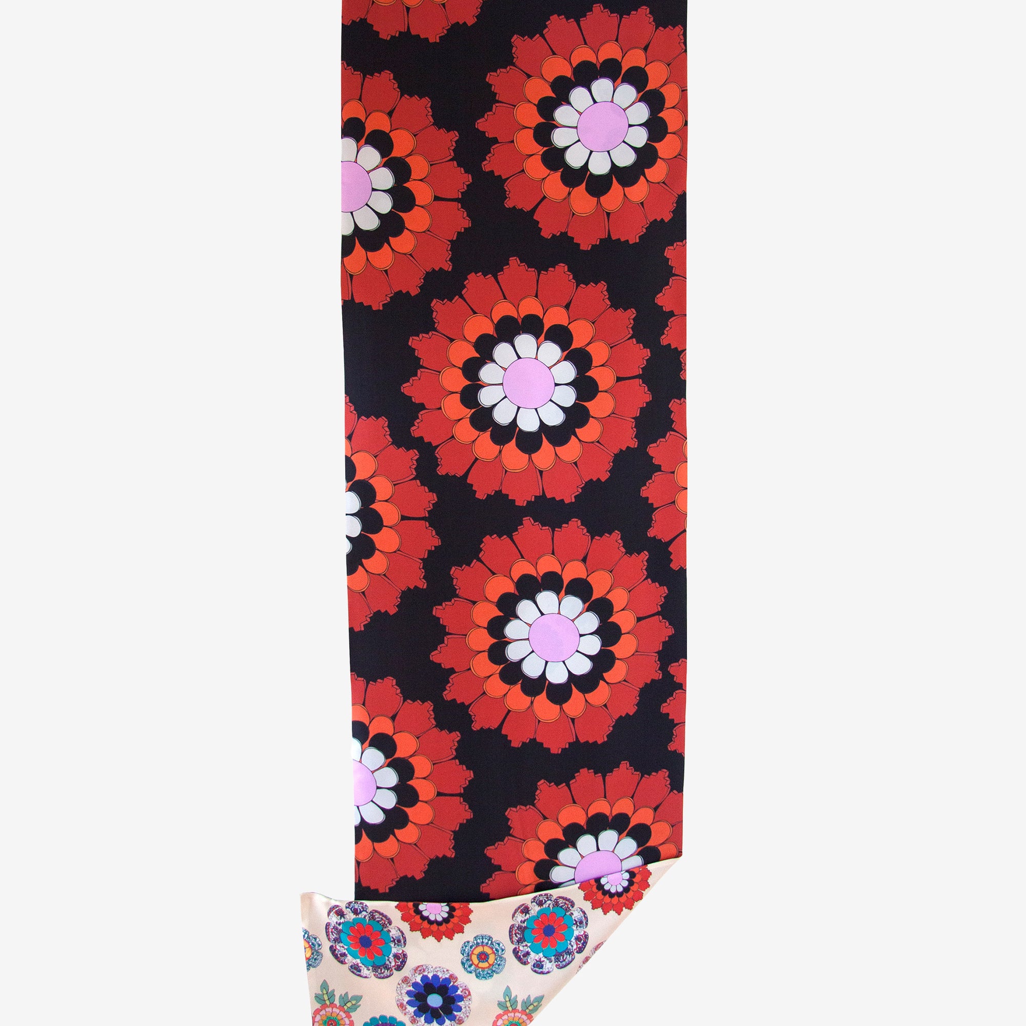 Printed on a luxurious 40x180cm double-sided silk twill and crafted in the UK, this scarf showcases a unique design on each side — offering versatile styling and a dynamic statement with every wear.