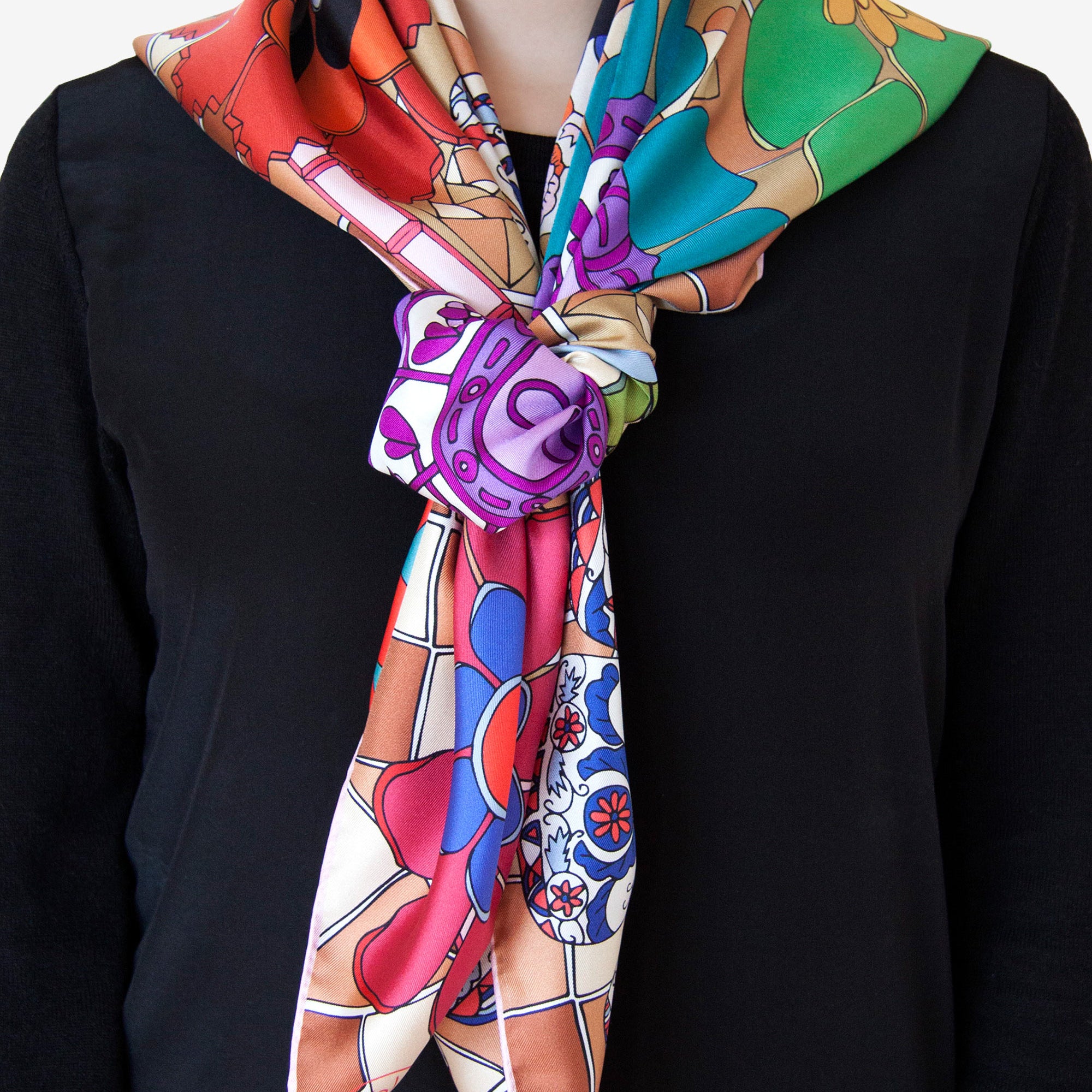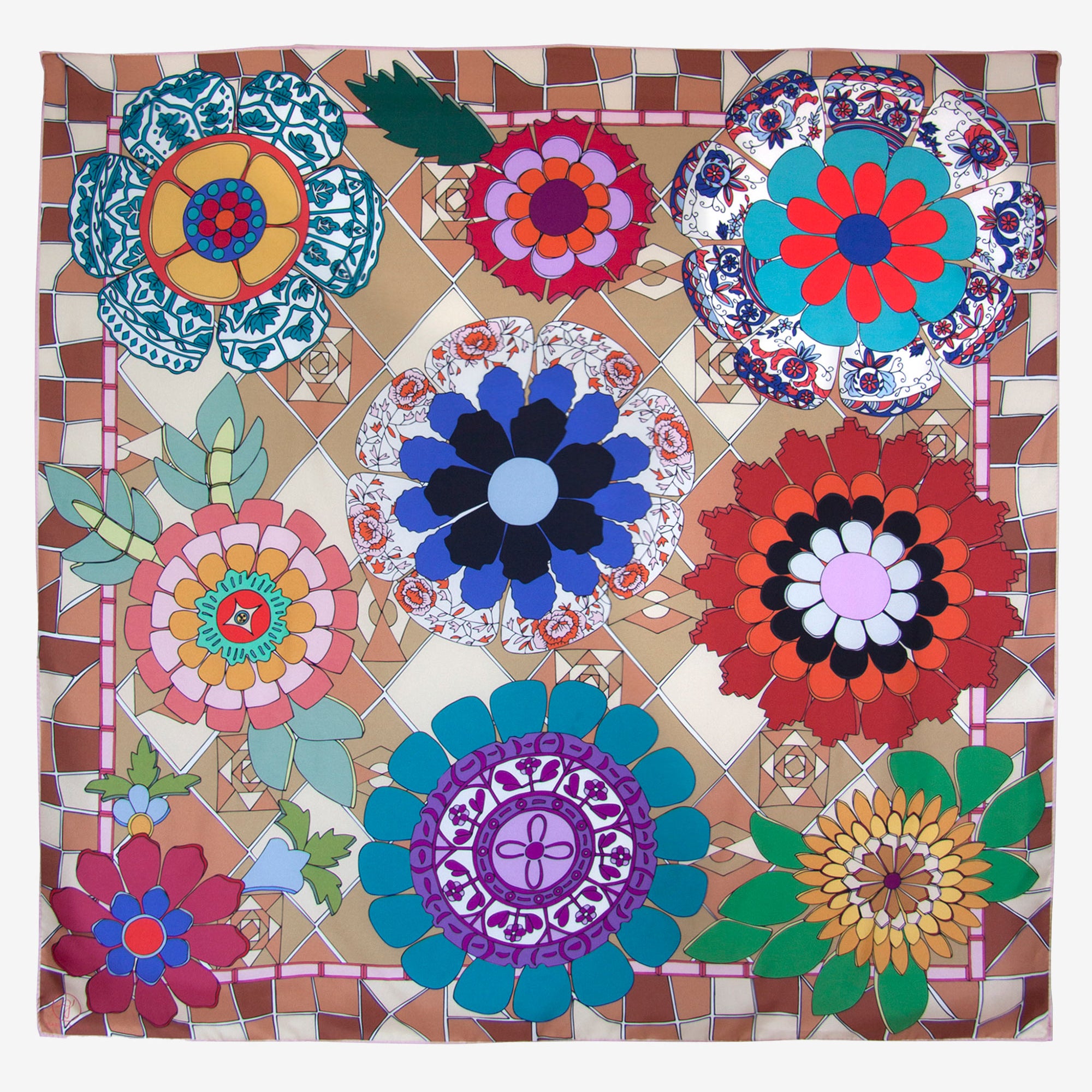 Printed on a classic 90x90cm square of luxurious silk twill and crafted in the UK, this scarf combines a crisp, elegant drape with vibrant, lasting color — perfect for neck, hair, or as a statement accessory.