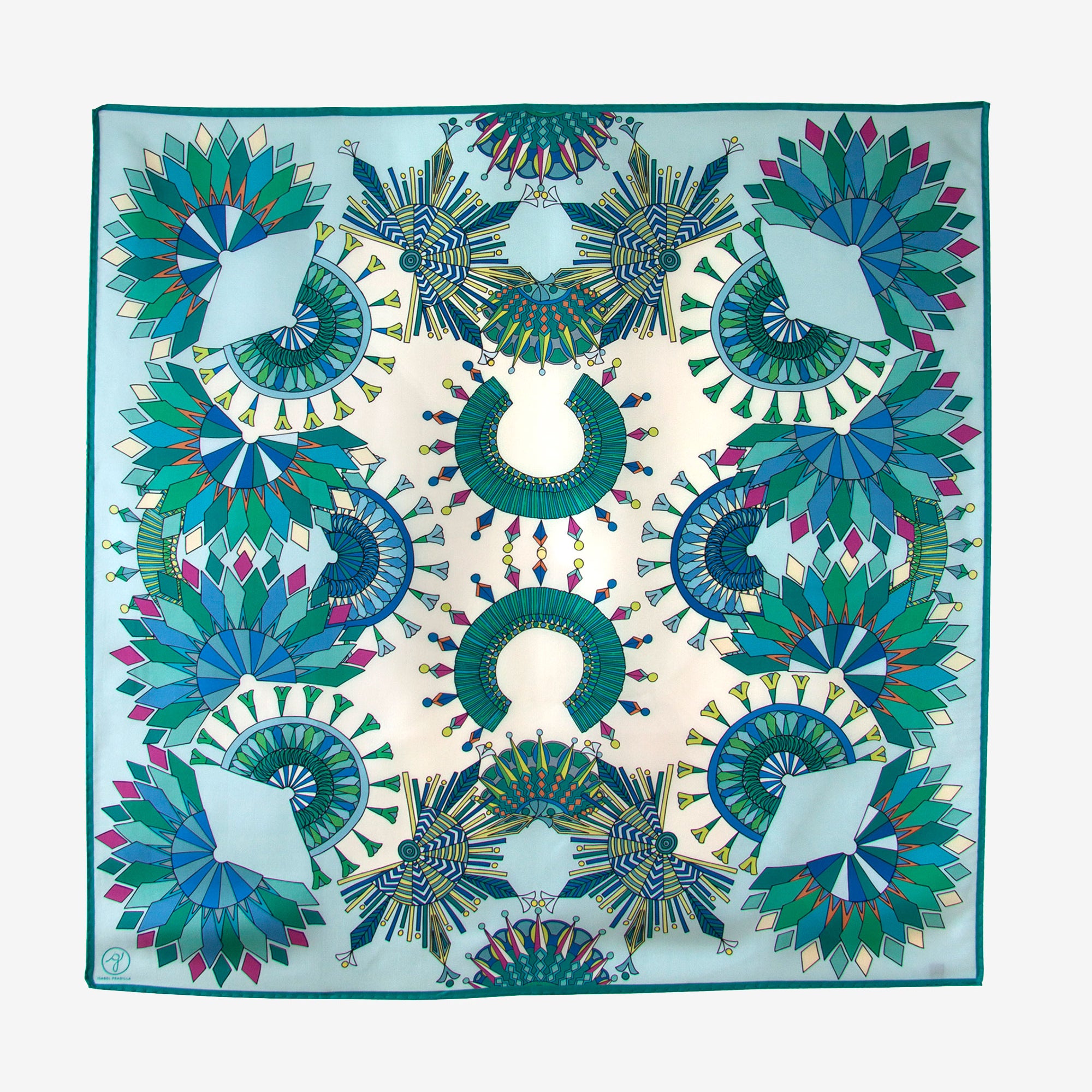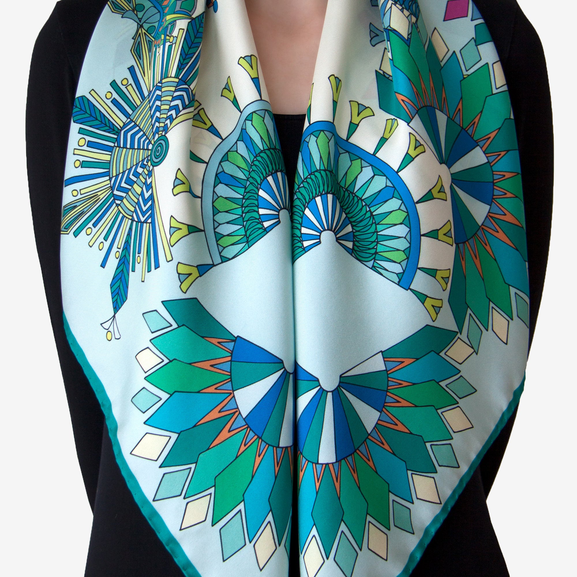 Printed on a classic 90x90cm square of luxurious silk twill and crafted in Italy, this scarf combines a crisp, elegant drape with vibrant, lasting color — perfect for neck, hair, or as a statement accessory.