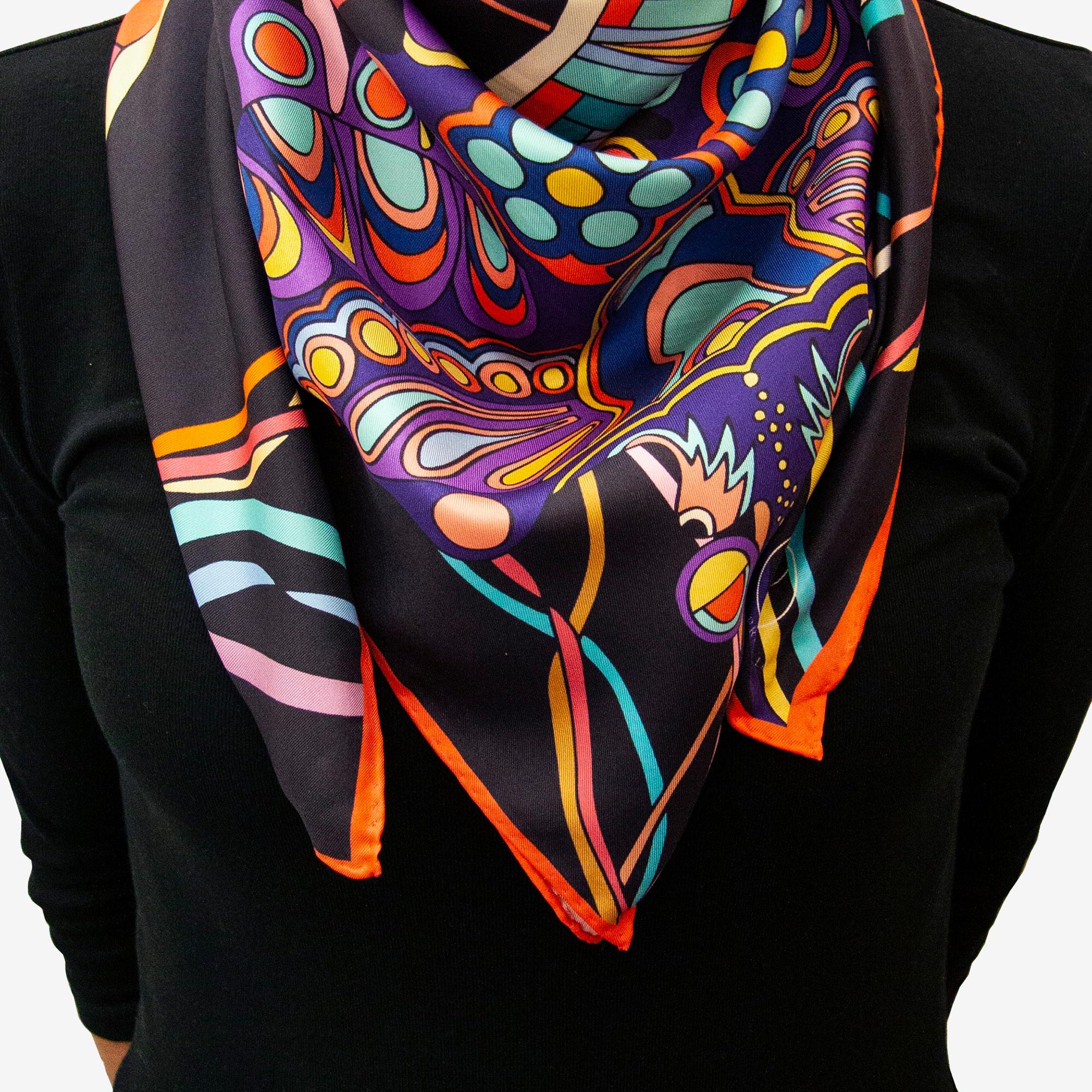 Inspired by Anastasia, one of the many fantastical cities described in Italo Calvino’s Invisible Cities, this scarf reimagines a place where wonder floats in the air and the sky is alive with colour. In Calvino’s story, Anastasia is a city built on dreams and desires—a place where everything feels possible. Translating that vision into silk, this design features a sky filled with hand-drawn kites in playful shapes and vivid hues, drifting freely across the surface.