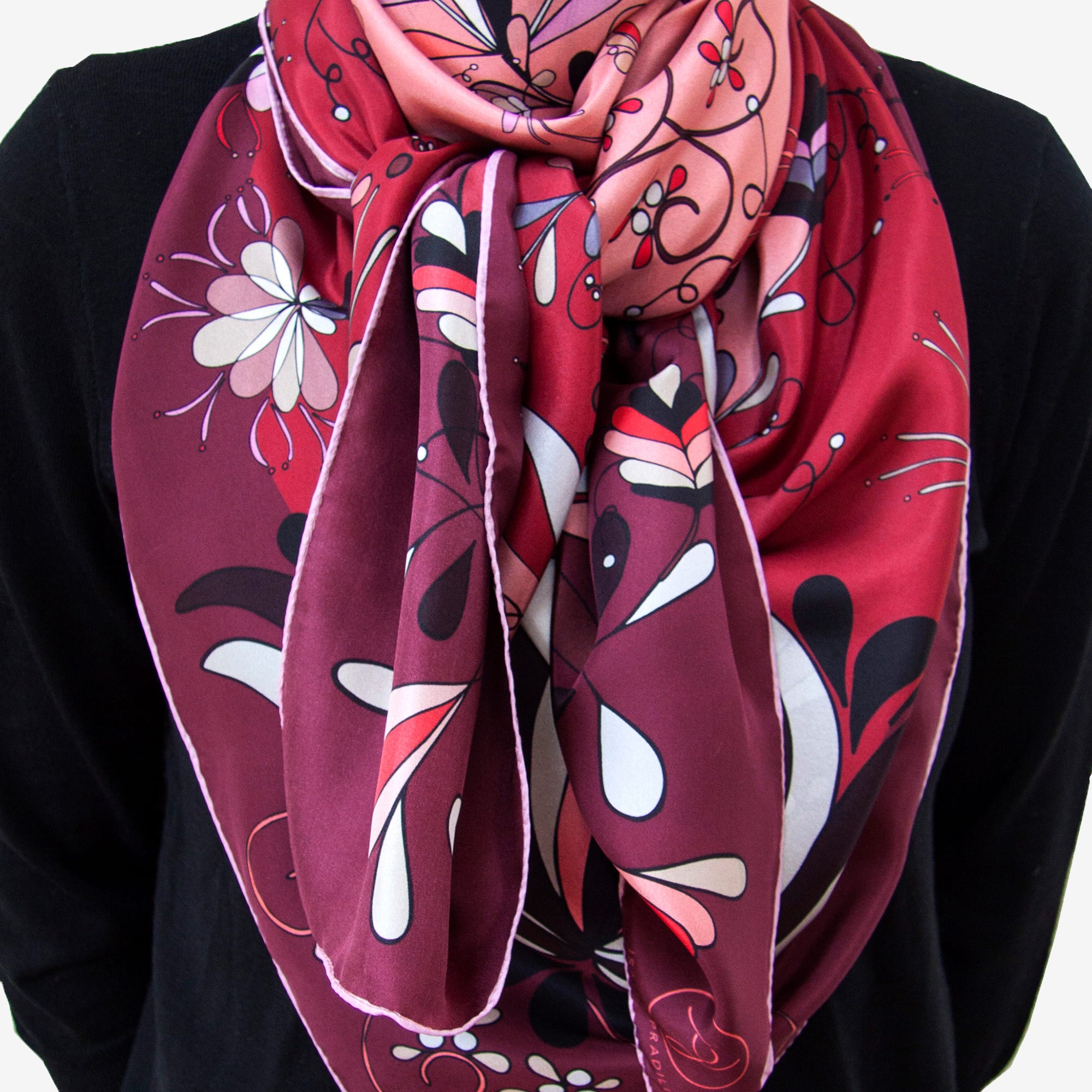 Printed on a generous 136x136cm square of lightweight silk habotai and crafted in the UK, this scarf drapes beautifully and invites versatile styling — perfect for layering or statement looks.