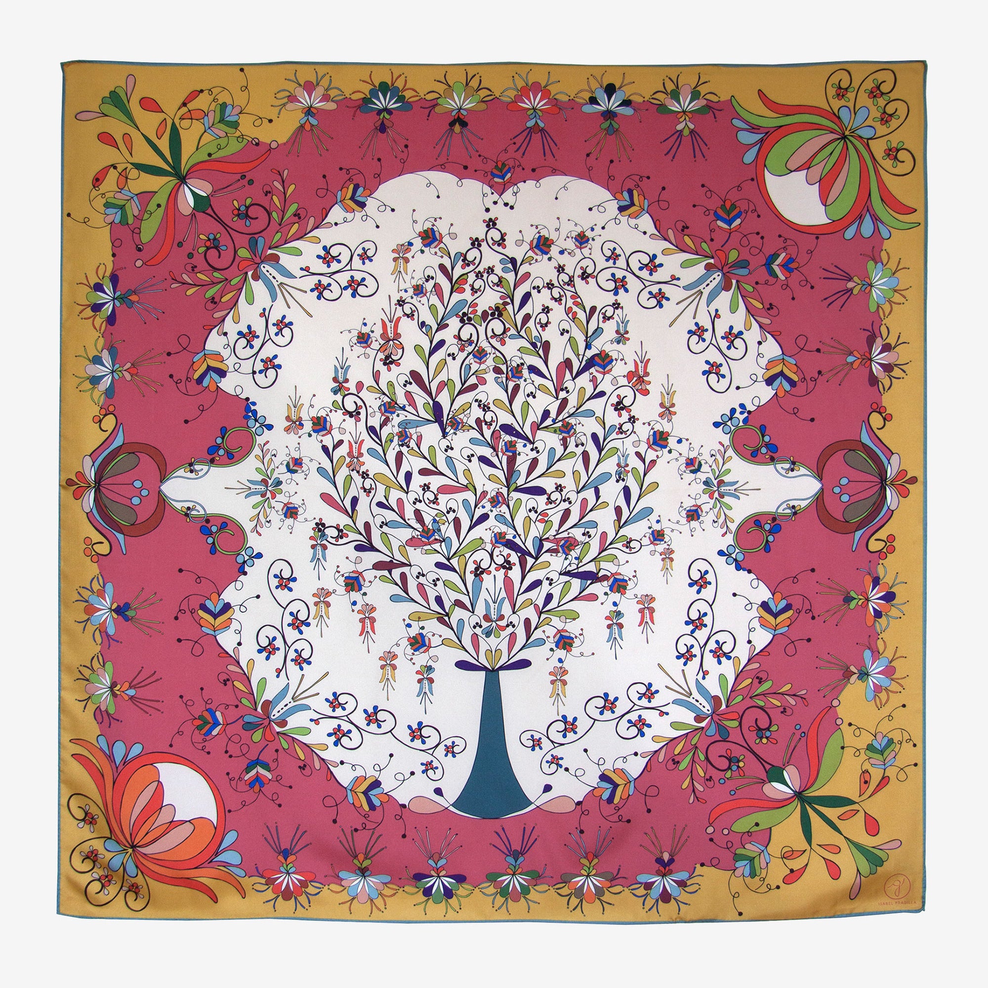 Printed on a classic 90x90cm square of luxurious silk twill and crafted in the UK, this scarf combines a crisp, elegant drape with vibrant, lasting color — perfect for neck, hair, or as a statement accessory.