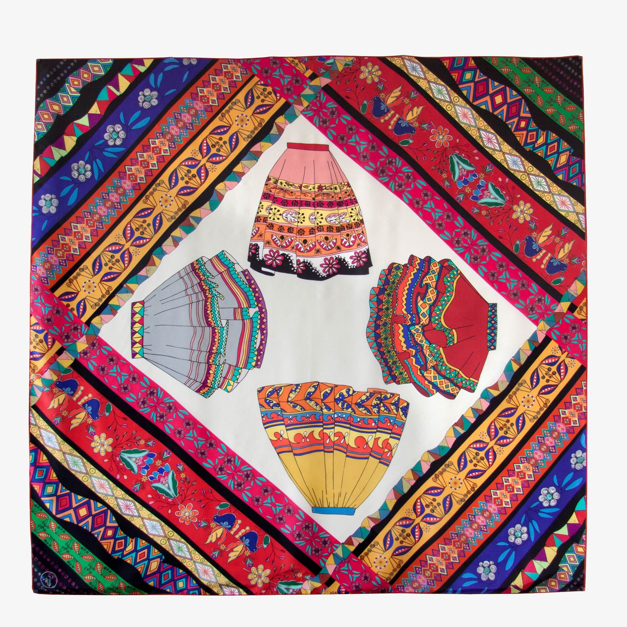 Printed on a generous 136x136cm square of lightweight silk habotai, and expertly crafted in the UK, it offers luminous movement and endless styling possibilities. A modern homage to heritage and craftsmanship, this piece carries the spirit of discovery and the deep connection between people, culture, and nature.