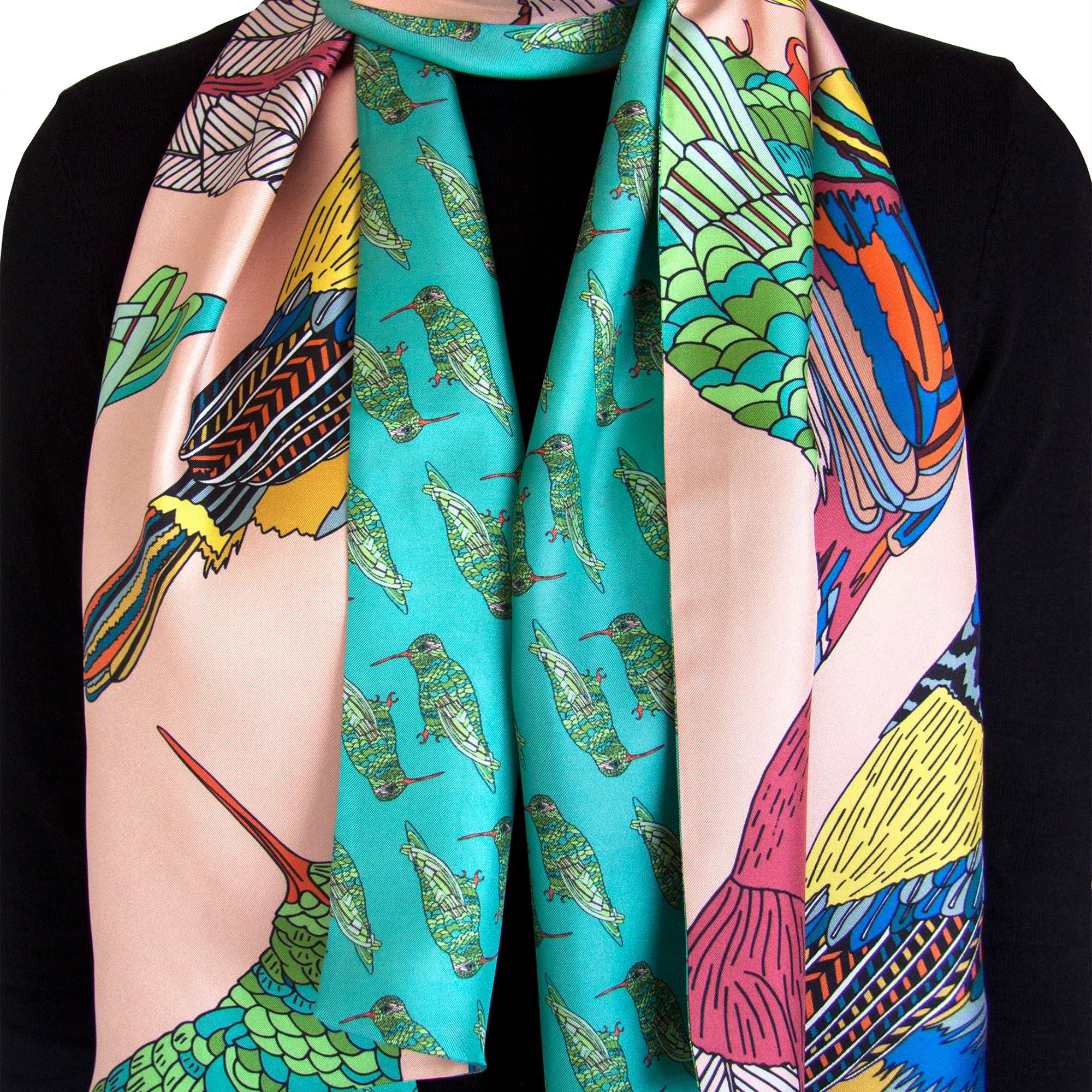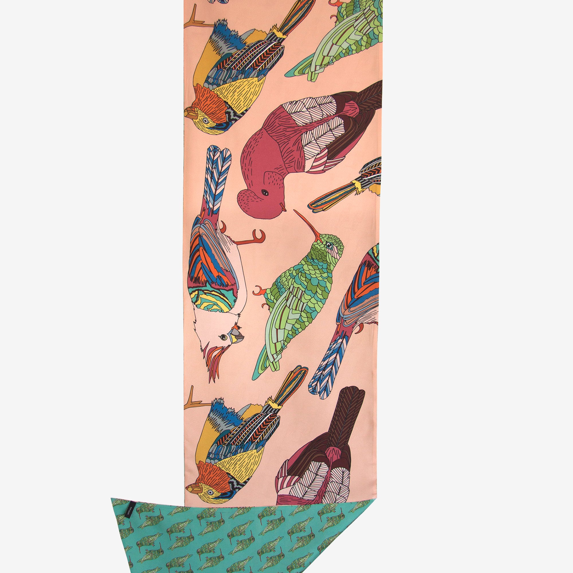 Printed on a luxurious 40x180cm double-sided silk twill and crafted in the UK, this scarf showcases a unique design on each side — offering versatile styling and a dynamic statement with every wear.