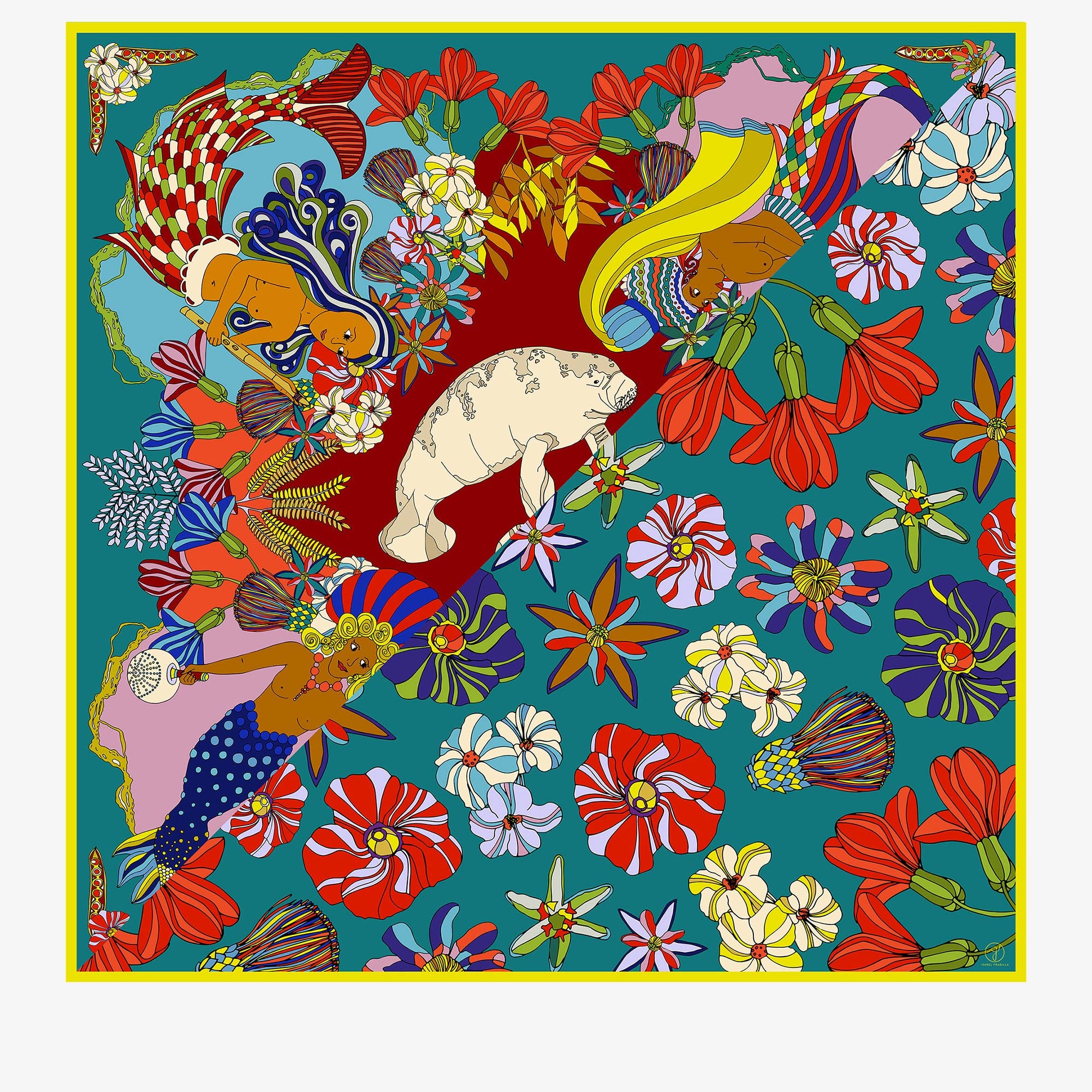 Part of the Kosmos II collection, Magdalena is inspired by Colombia’s legendary Magdalena River — where myths of mermaids and manatees drift alongside the rhythms of cumbia music. This hand-drawn design intertwines mythical creatures with traditional instruments born on the riverbanks, celebrating a rich cultural tapestry.