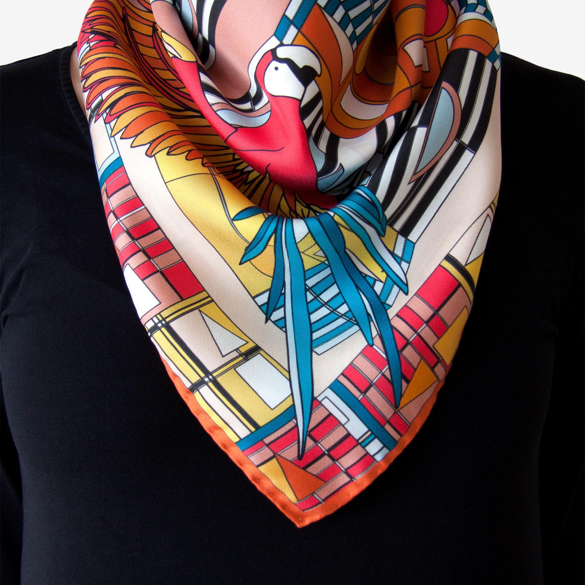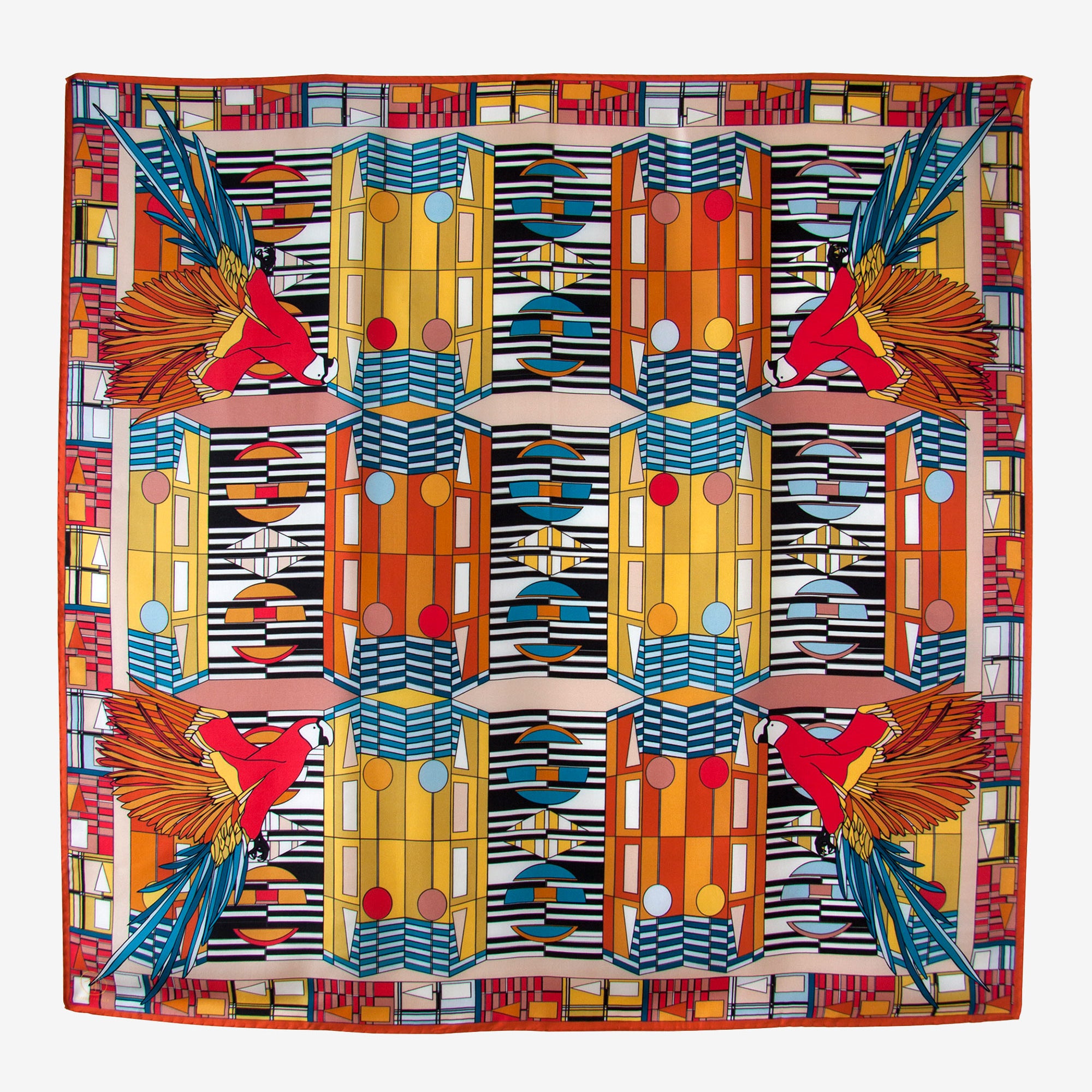Printed on a classic 90x90cm square of luxurious silk twill and crafted in Italy, this scarf combines a crisp, elegant drape with vibrant, lasting color — perfect for neck, hair, or as a statement accessory.