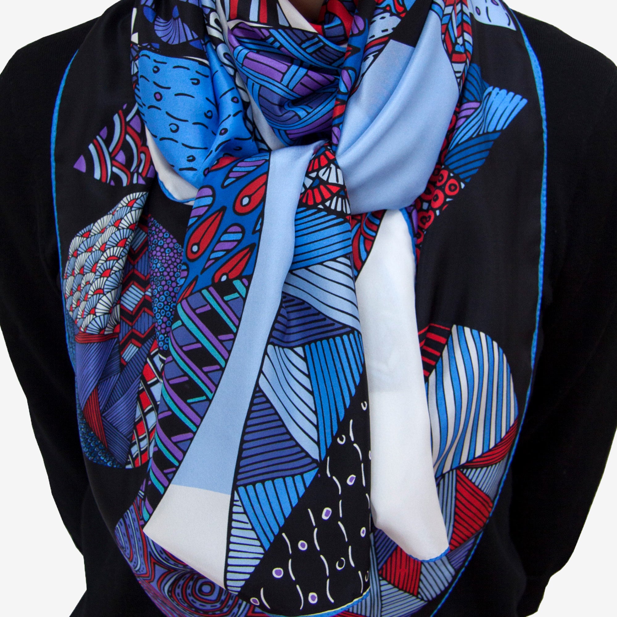 Printed on a generous 136x136cm square of lightweight silk habotai and crafted in the UK, this scarf drapes beautifully and invites versatile styling — perfect for layering or statement looks.