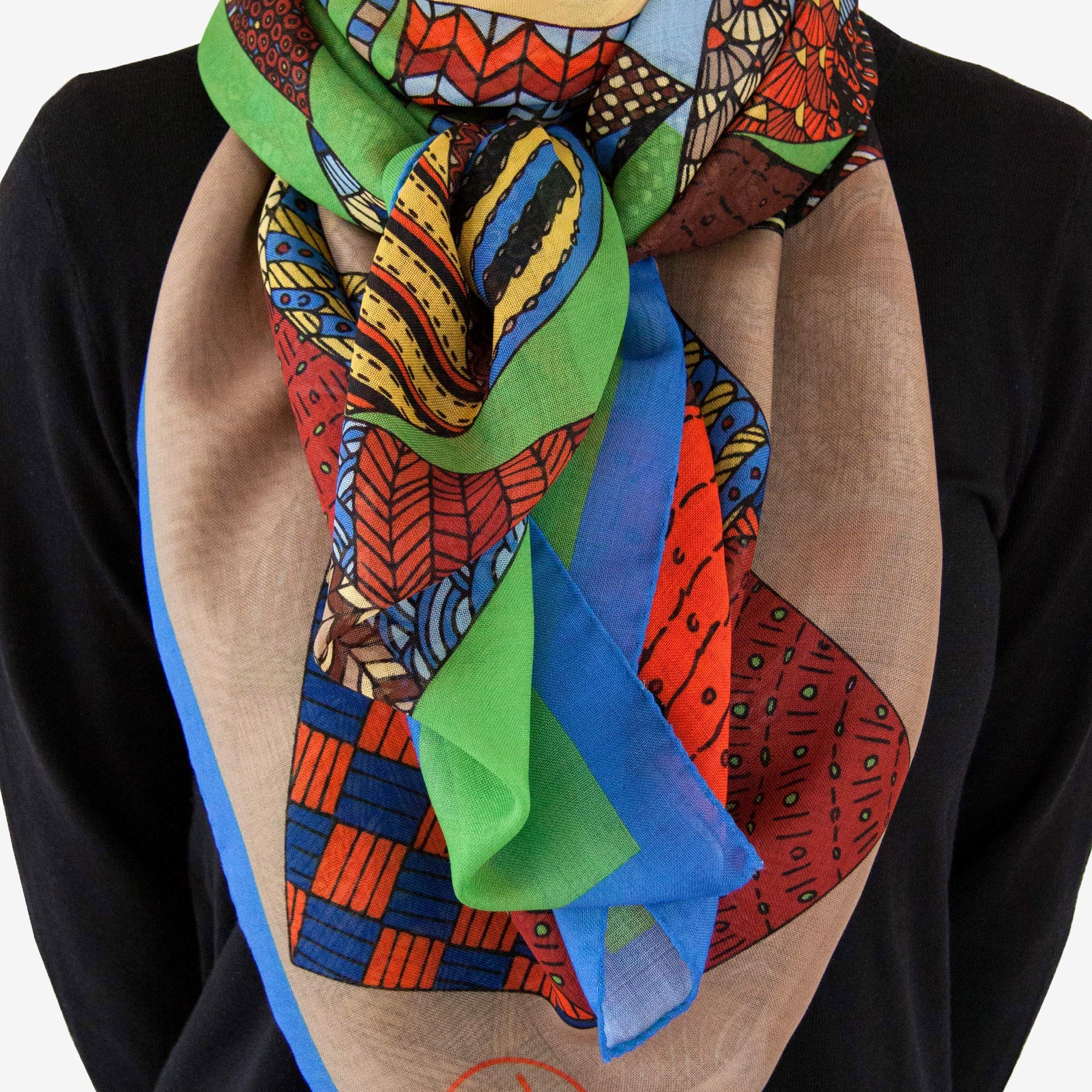Printed on a generous 134x134cm square of 100% wool and crafted in Italy, this scarf offers a soft, warm drape with a feather-light feel — ideal for wrapping yourself during the colder months.